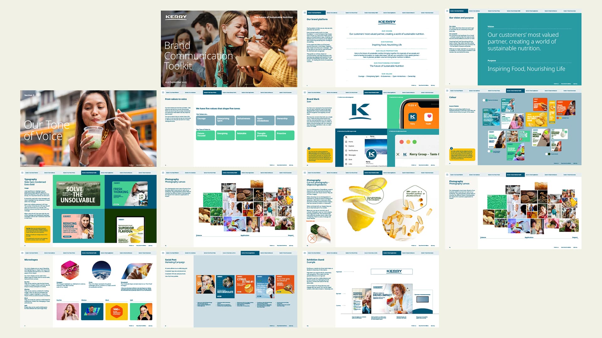 Together, these visual elements breathe new life into the brand system – pushing everything a little further to ensure that Kerry is seen not just for what it makes, but for what it makes possible.