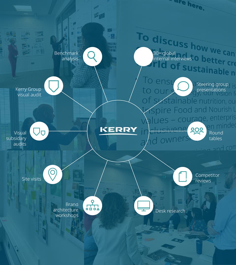 While the Masterbrand was strong, it had not fully kept pace with this shift. It needed to move beyond signalling purpose and clearly express Kerry’s role as a science-driven partner helping customers move faster from concept to launch – while navigating regulation, reformulation, nutrition goals and sustainability demands. It needed to: