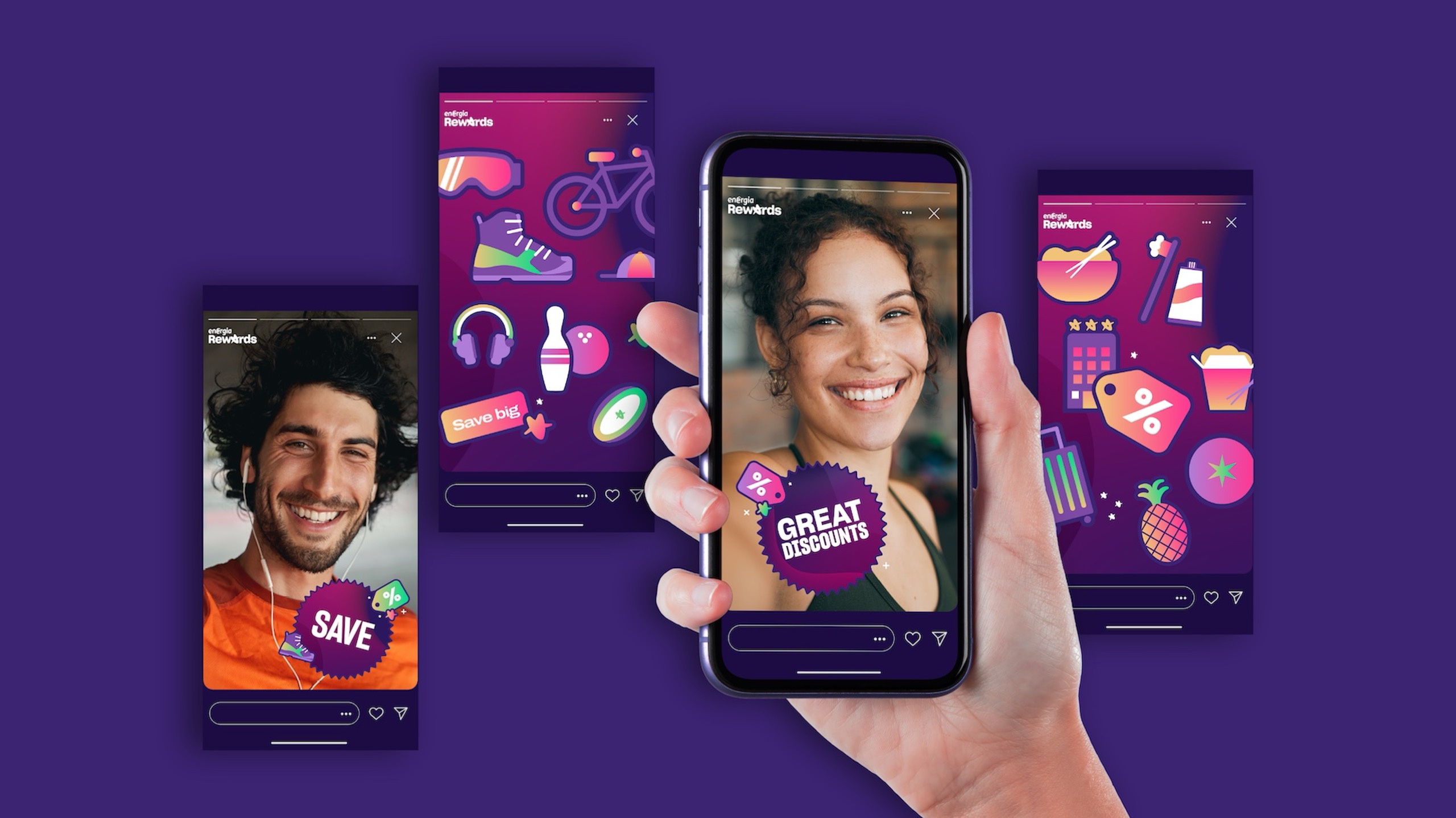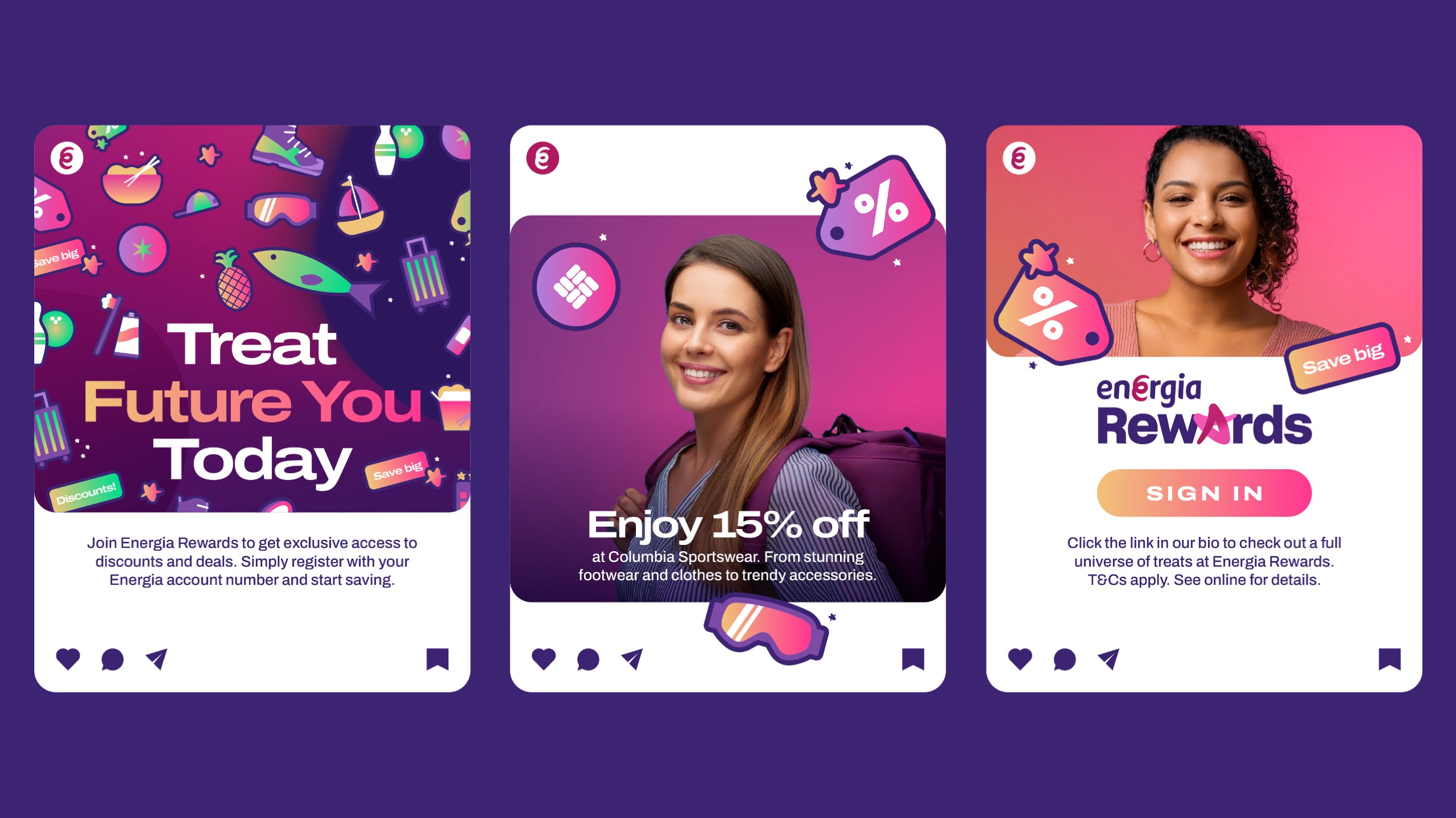 We reimagined the Energia Rewards identity bringing the diverse range of offers and discounts to life through fun and engaging stickers that add a playful touch to communications