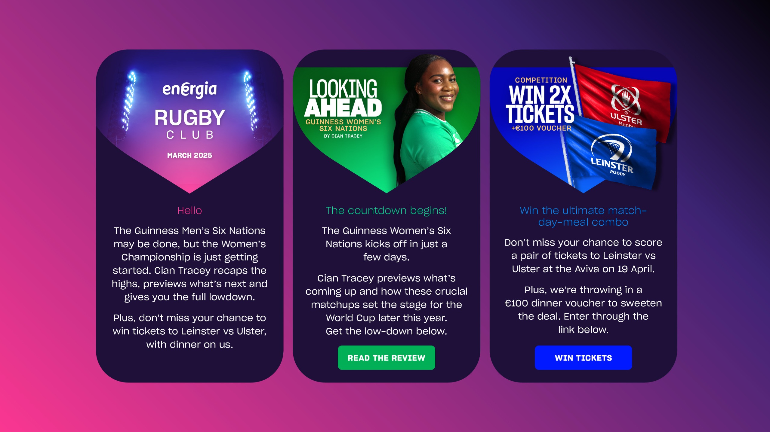 Garnering loyalty in the energy industry is difficult at the best of times. With customers able to switch providers easily, Energia Rewards is Energia’s loyalty offering, driving loyalty and reducing churn through customer discounts, competitions and renewal offers.