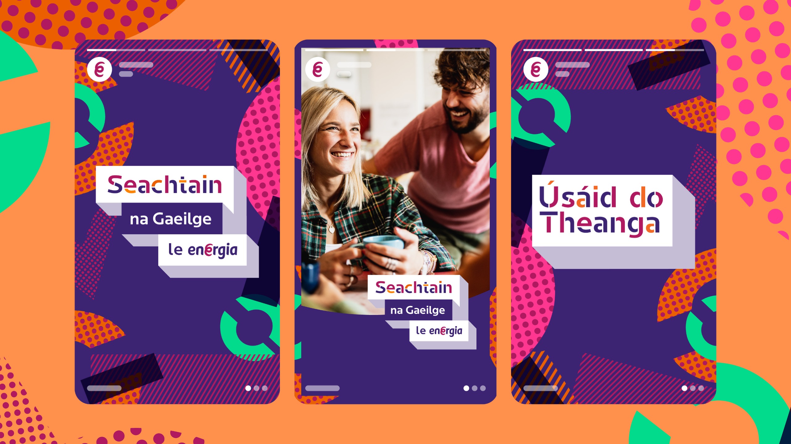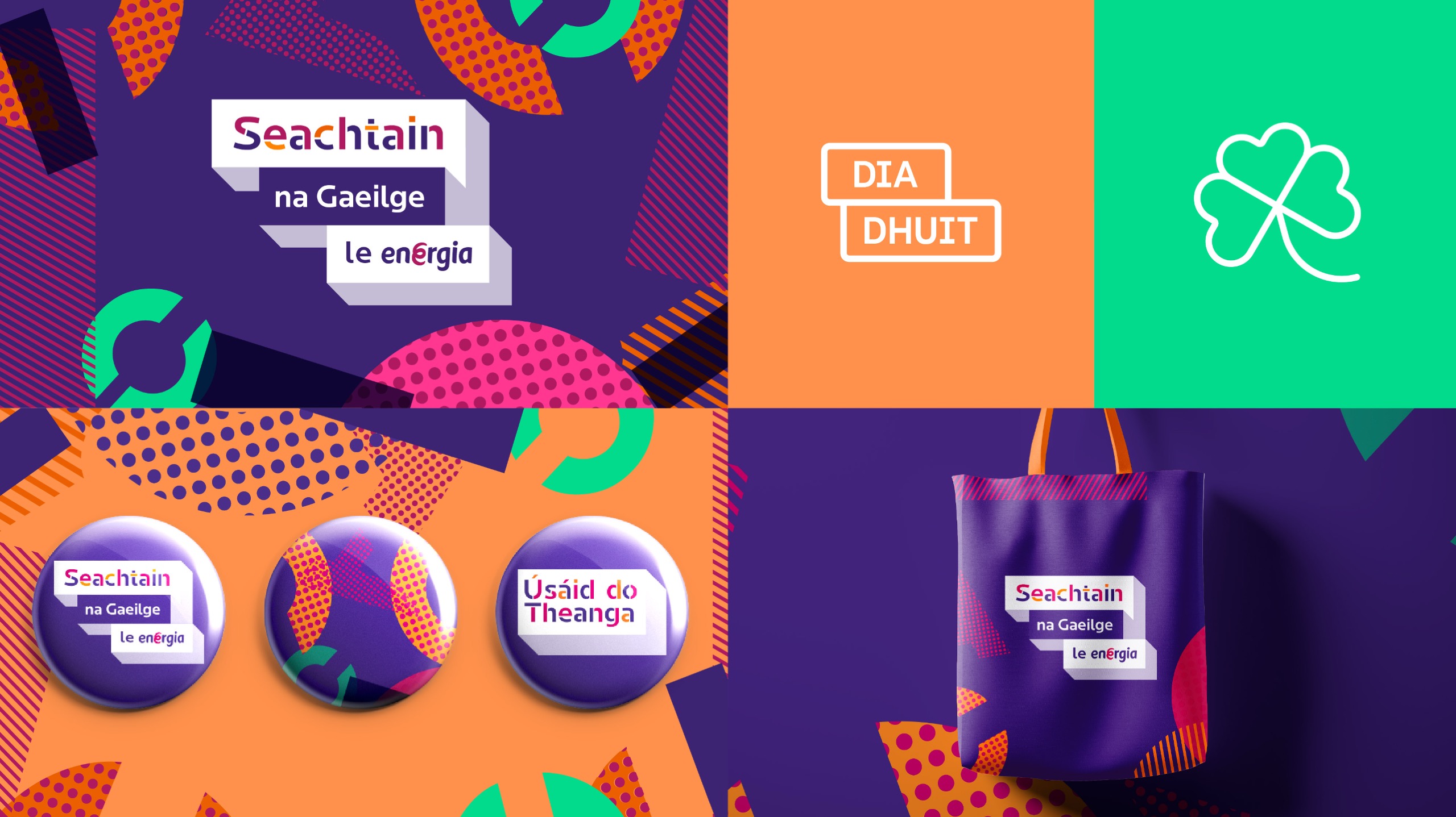 We worked with Energia and Conradh na Gaeilge to redesign the campaign identity, creating a fun and dynamic system that was rolled out across key touchpoints.